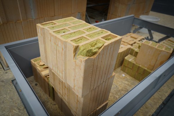 ブロック煉瓦のなかに、ロックウールが入っているものです。