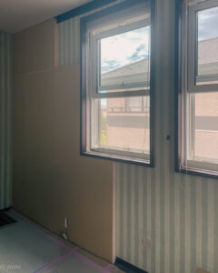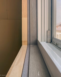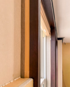 この断熱ボードを施工することで、既存の壁から39.5㎜壁厚が増すため、今回はそれに合わせて窓枠も加工しています。