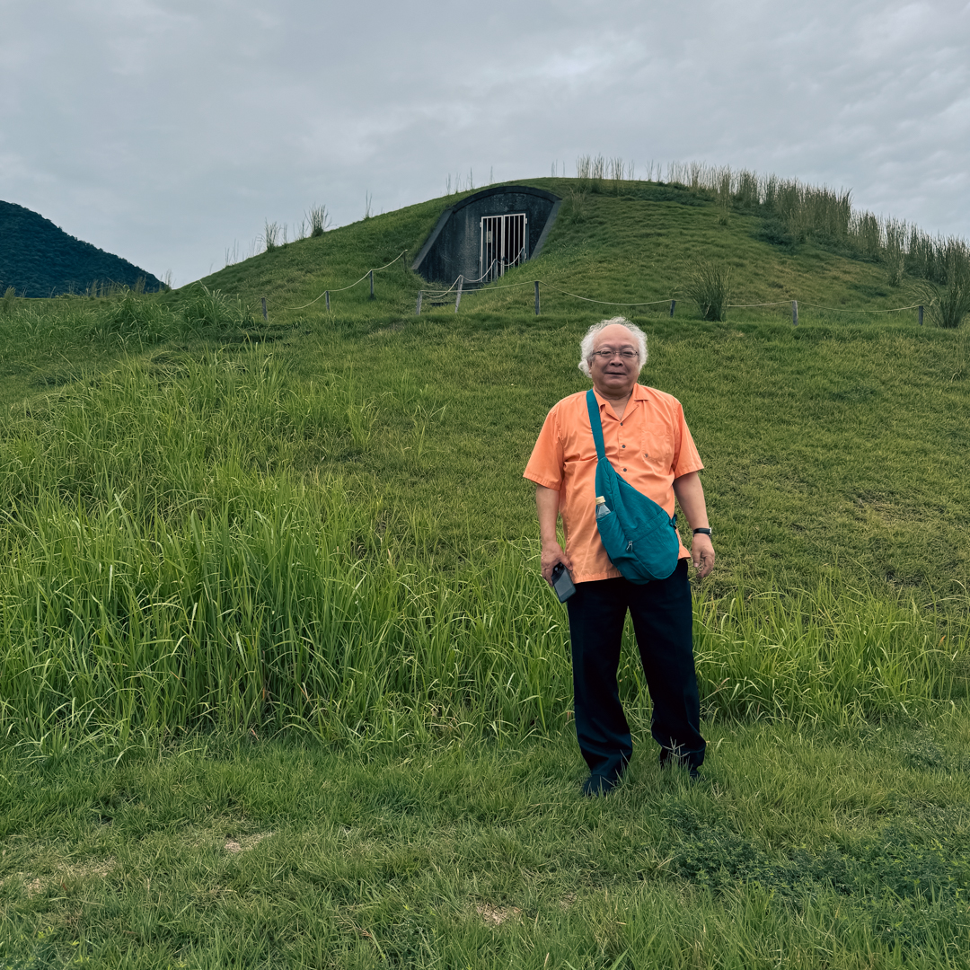 70歳超えている西方さんはやっとの思いで古墳へ上がり下りは手をつないで下りてきました(笑)