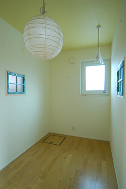 床板はパイン無垢板。イケアの照明器具をプレゼントしました。どこに吊り下げるのか楽しみです!
