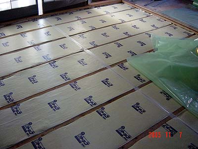 現在は、床へのポリエチレンシートは使用していないが、念のために施工した。