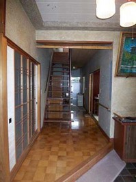 玄関〜廊下・階段まで、同じ繊維壁が続いています。