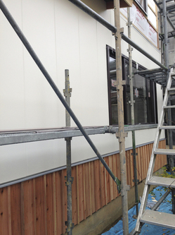 既存外壁を剥がし、外からの断熱材充填を行い、外壁張りが進んでおります。