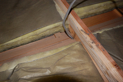 間仕切り壁から気流が漏れていて、グラスウールの端が黒ずんでいるのが解る